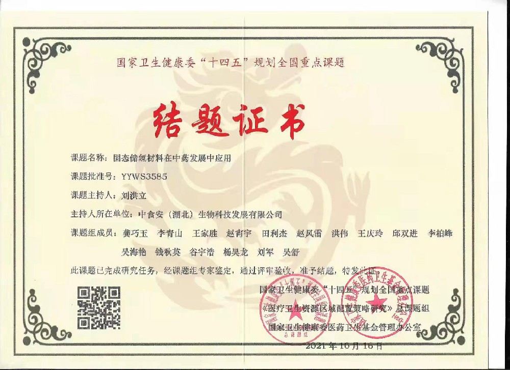 今日,龚巧玉院士、李青山院士参与的国家卫生健康委“十四五”规划全国重点课题--“固态储氢材料在中药发展中应用”,经过专家鉴定,通过评审验收,圆满结题。...