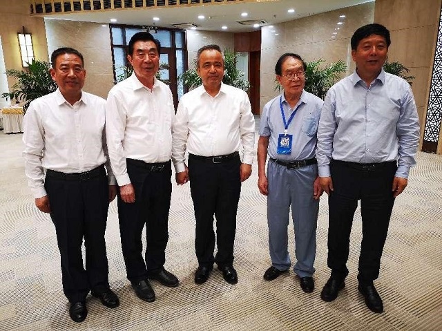党永富院士、黄正明院士、艾尔肯主席、侯天侦院士、尹伯悦院士合影