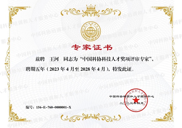 热烈祝贺联合国国际生态生命安全科学院中国院王河院士当选“中国科协科技人才奖项评审专家”!!...